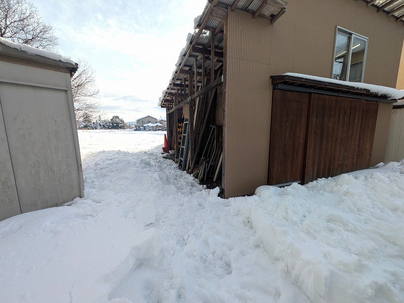 今日は資材置き場の屋根雪をお降ろしに行ってきました。
